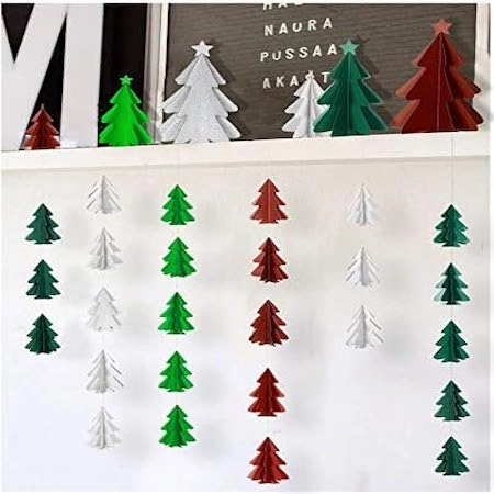 Add a festive and whimsical touch to your celebrations with our 3D Mini Paper Garland Banner. Crafted from durable, recyclable paper, each garland features miniature 3D Christmas trees that are colorful, realistic, and eye-catching from every angle.
