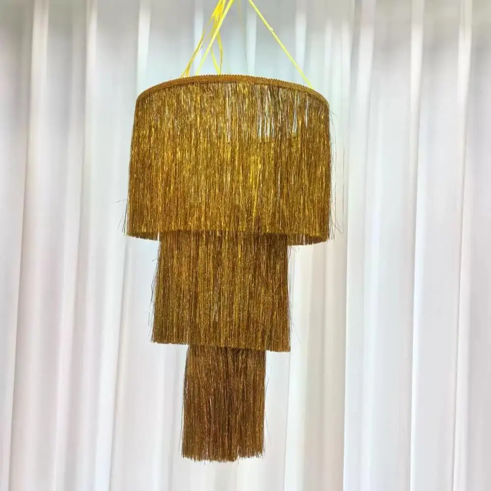 Shimmering Metallic Design – 3-tier metallic plastic tinsel strands create a sparkling chandelier effect