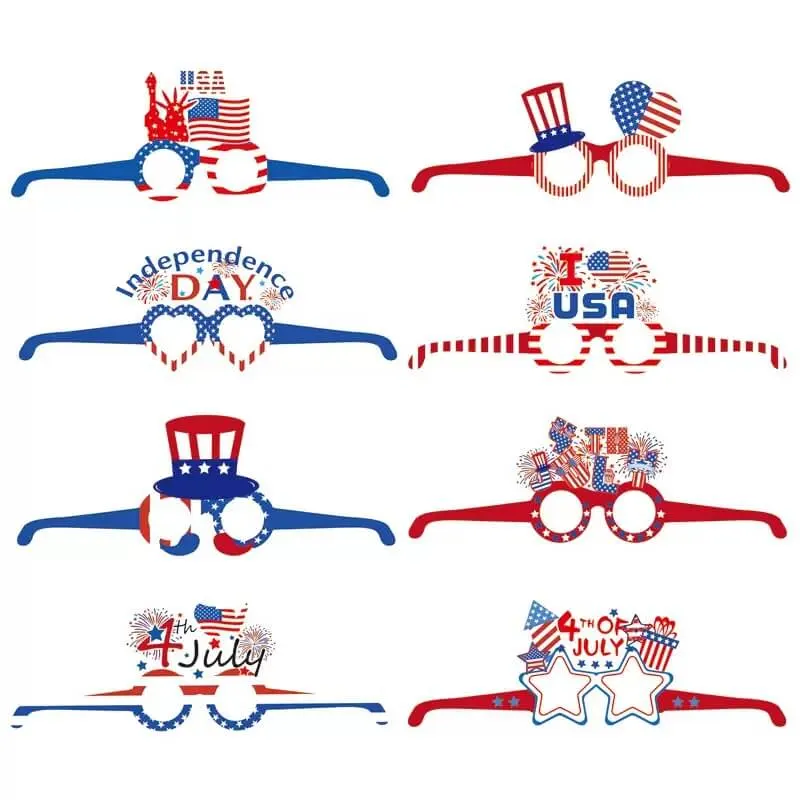 Designed with classic American flag colors and festive elements such as stars, hearts, and balloons, these patriotic glasses add a vibrant and eye-catching touch to any party. Made from durable 300g paper card, they are lightweight, sturdy, and comfortable to wear without adding pressure.