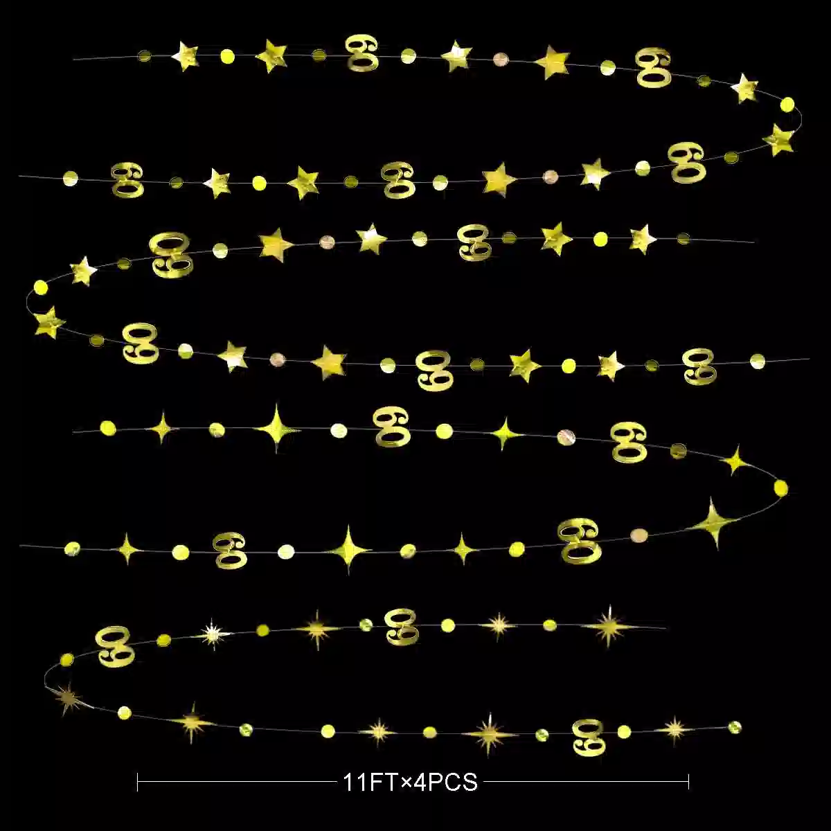 The premium gold metallic finish reflects light beautifully, creating a warm and festive party atmosphere. Perfect for decorating dessert tables, photo booths, walls, ceilings, doorways, or party backdrops, this garland instantly transforms your venue into a milestone-worthy celebration space.