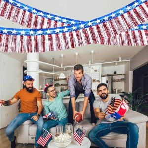 - Package : 4th of july fringe banners , enough quantity for independent day memorial day patriotic festival party indoor outdoor hanging decorations. these usa flag banners will add color to your gathering and create great memories.