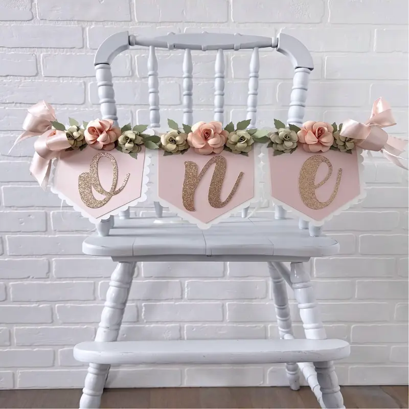 Featuring soft florals and boho-inspired ribbons, this banner adds a charming and elegant touch to high chairs, cake smash setups, and birthday photo backdrops.