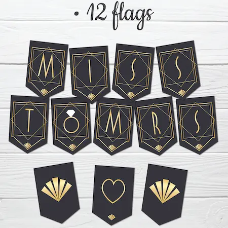 Celebrate the bride-to-be in style with our Miss to Mrs Banner, perfect for bridal showers, engagement parties, and bachelorette celebrations. Each banner includes 12 beautifully designed flags, each measuring 5 × 7 inches, pre-strung for easy setup.