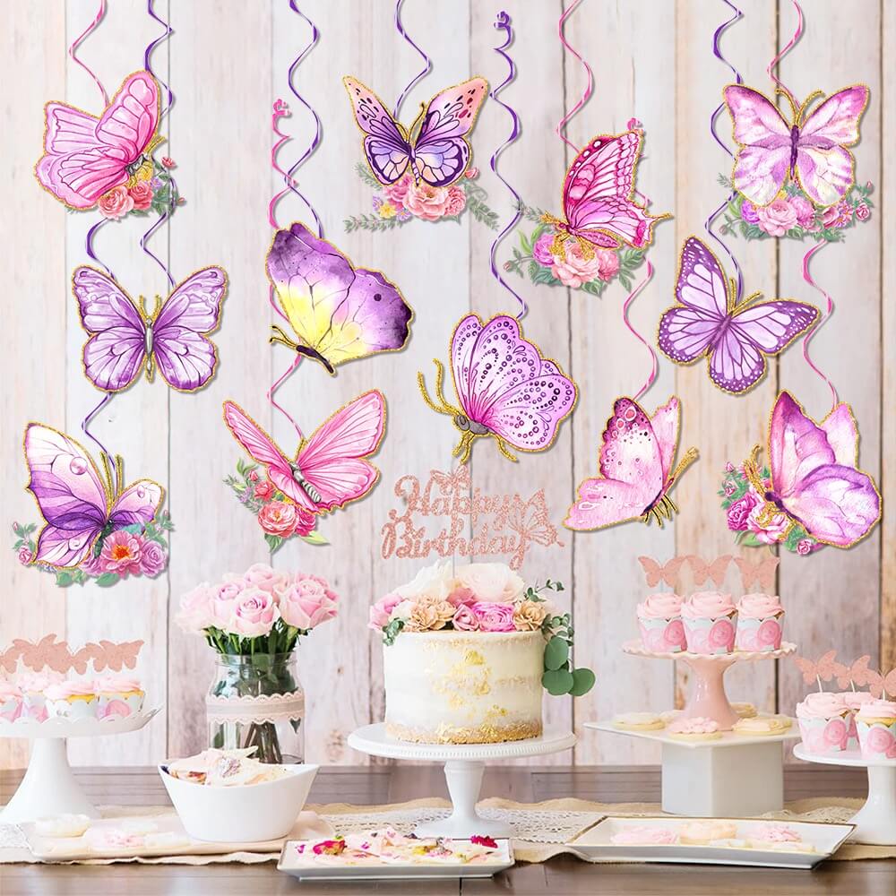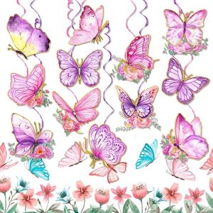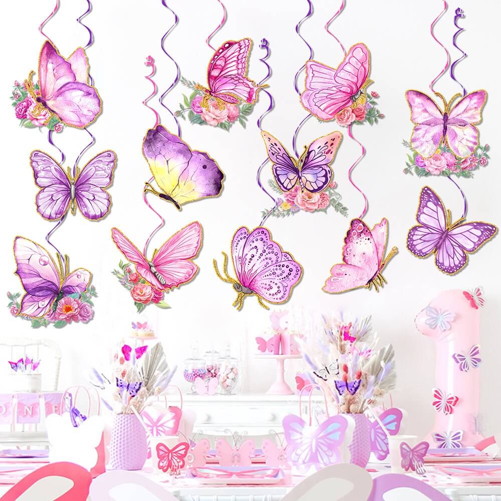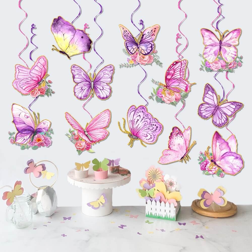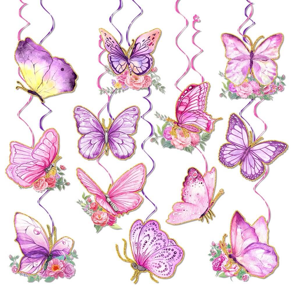 Summer Butterfly Hanging Swirl Decoration Party Streamer Hanging Ceiling Butterfly Decorations for Summer Spring Wedding Home Garden Girl Birthday Baby Shower Tea Party