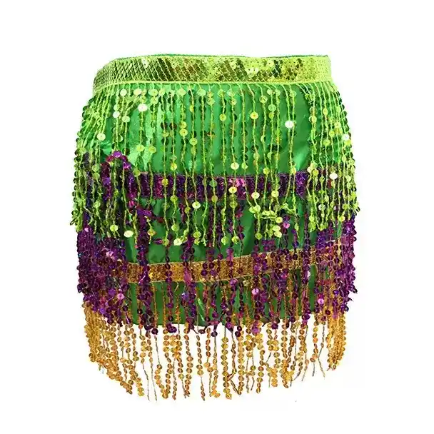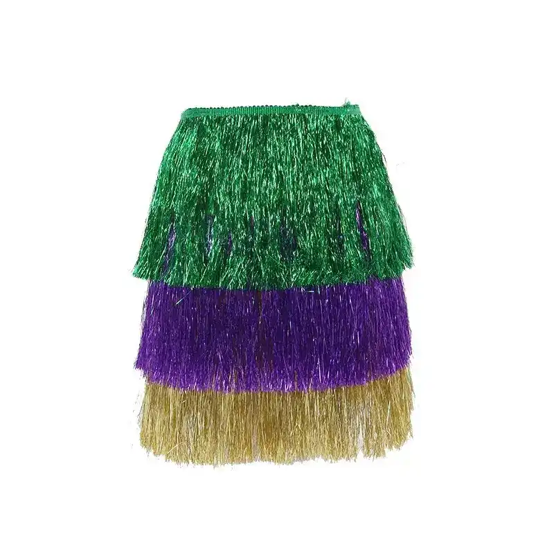 Bring vibrant energy to any celebration with this Samba Dance Performance Costume Set, inspired by the iconic colors of the Brazilian Carnival — green, purple, and gold. Designed to sparkle under lights and movement, the metallic-look strands create a dazzling visual effect while dancing.