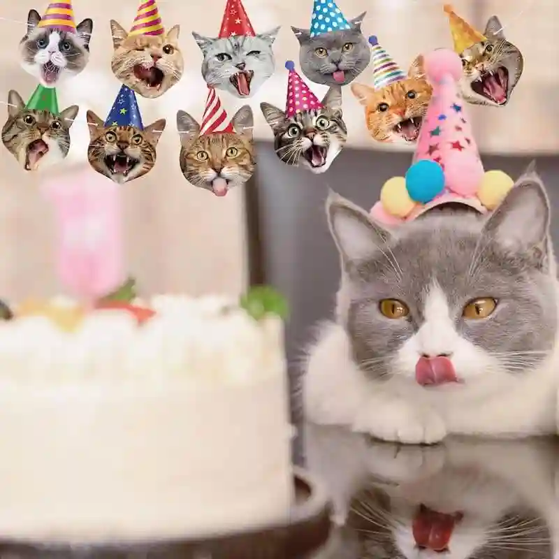 Cat Face Theme Happy Birthday Banner Garland – cute and colorful décor for kids’ birthday parties, animal-themed celebrations, and fun photo backdrops.