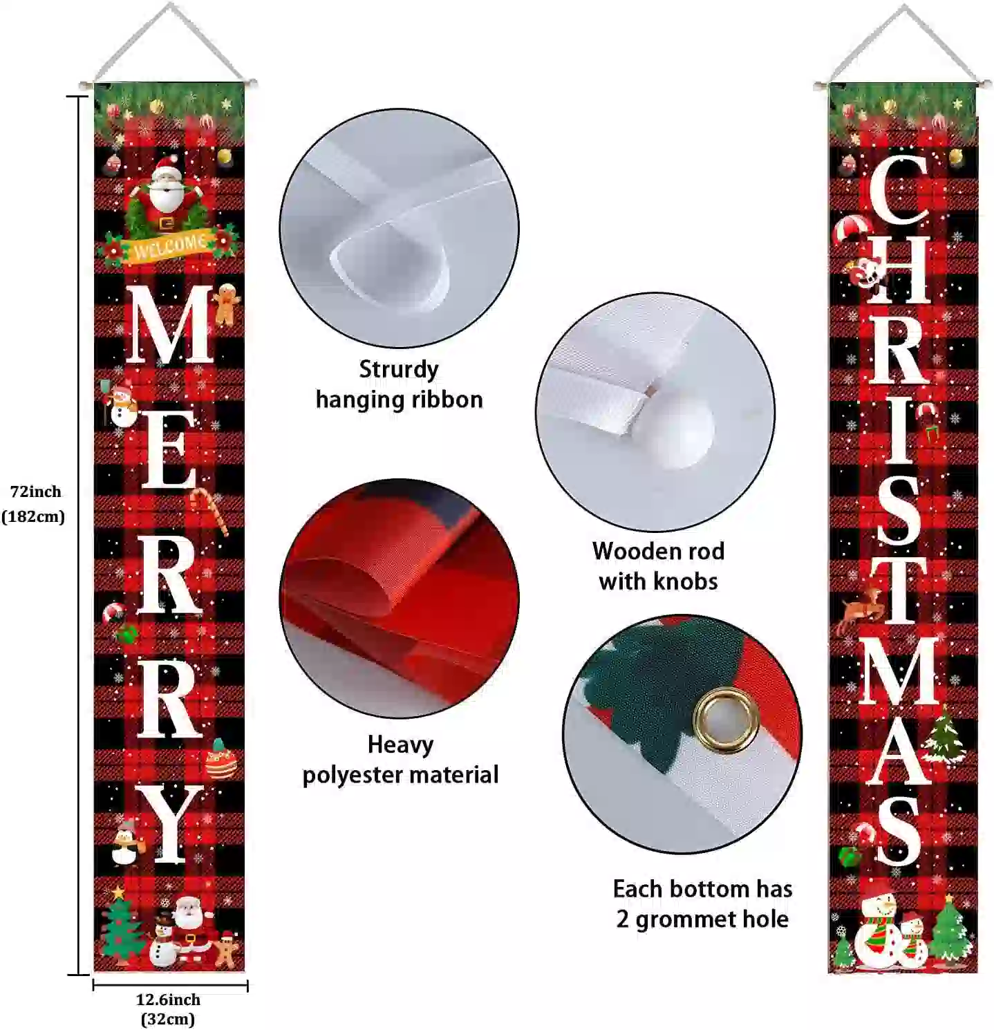 The banner measures 13″ x 72″ and comes pre-assembled with a rod and ribbon, making it quick and easy to hang. Its cheerful “Merry Christmas” design creates a warm, welcoming atmosphere for your guests and complements other Christmas decorations for a fully festive display.