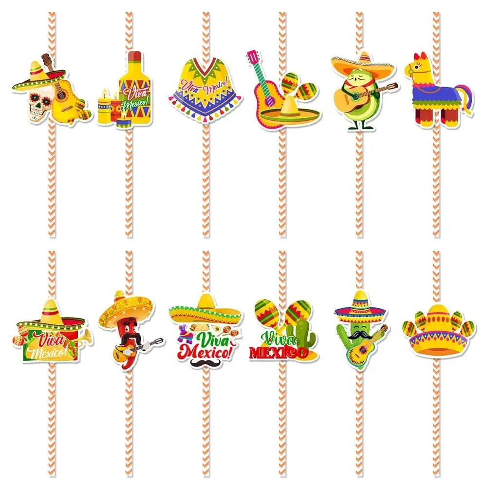 Bring vibrant fun to your celebration with our Cinco De Mayo Fiesta Paper Striped Straws Party Set. Each set includes 24 paper straws, 24 card labels, and 24 dot glue stickers for easy setup and creative drink presentations.
