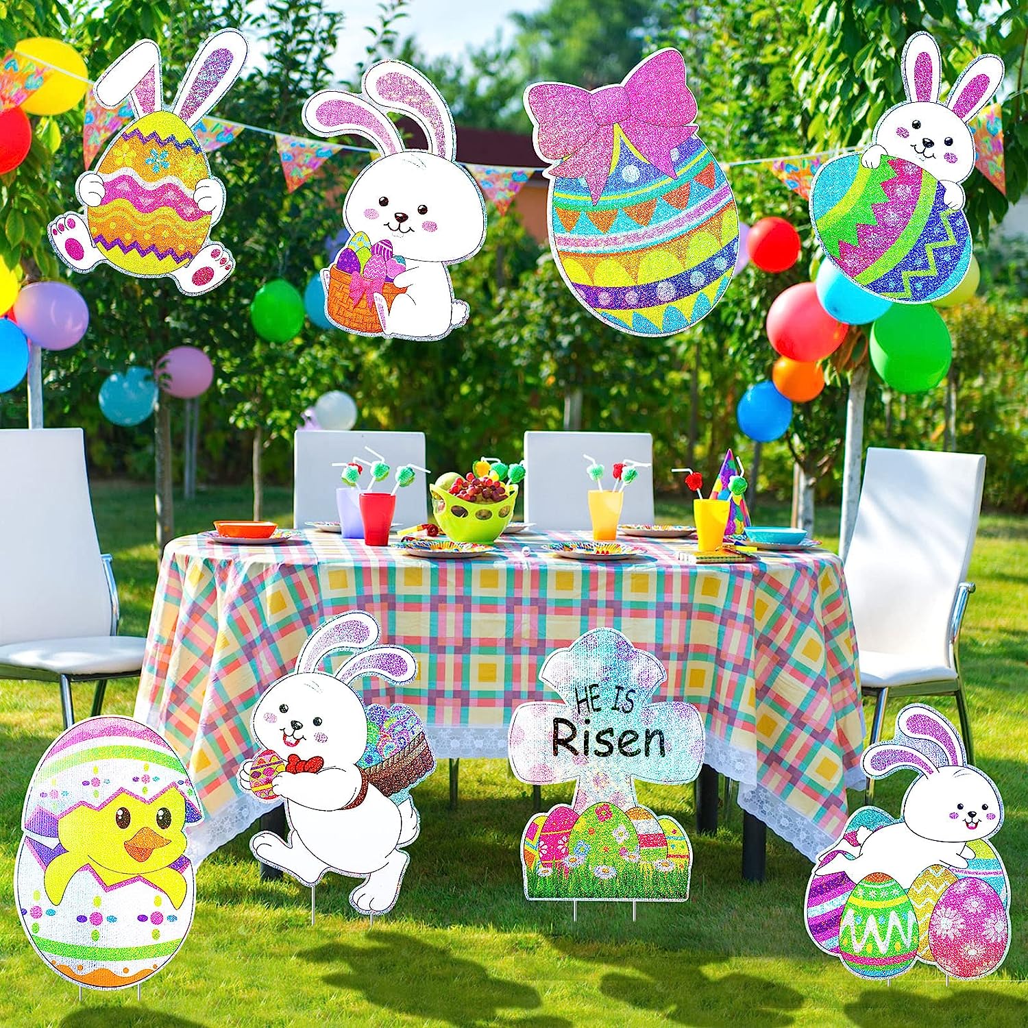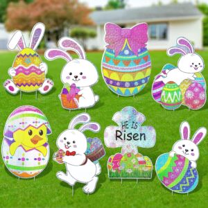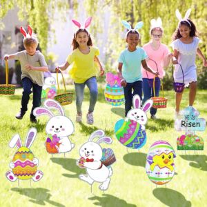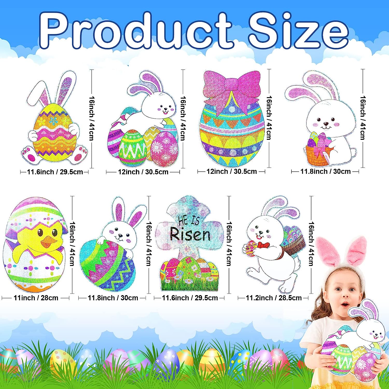 Satisfy Your Decoration Demands: this package consists of 8 pieces of Easter lawn signs, coming with 16 pieces of plastic stakes, which are befitting for most places, you can insert 2 stakes into each lawn signs and then press them into your yard or walkway to display