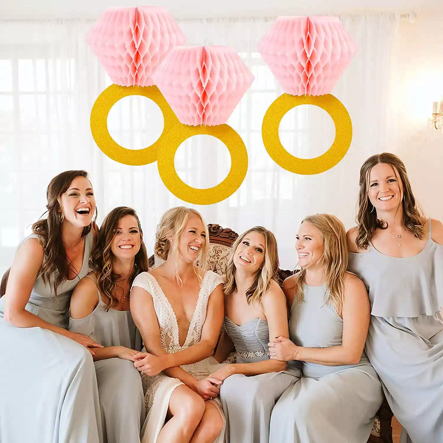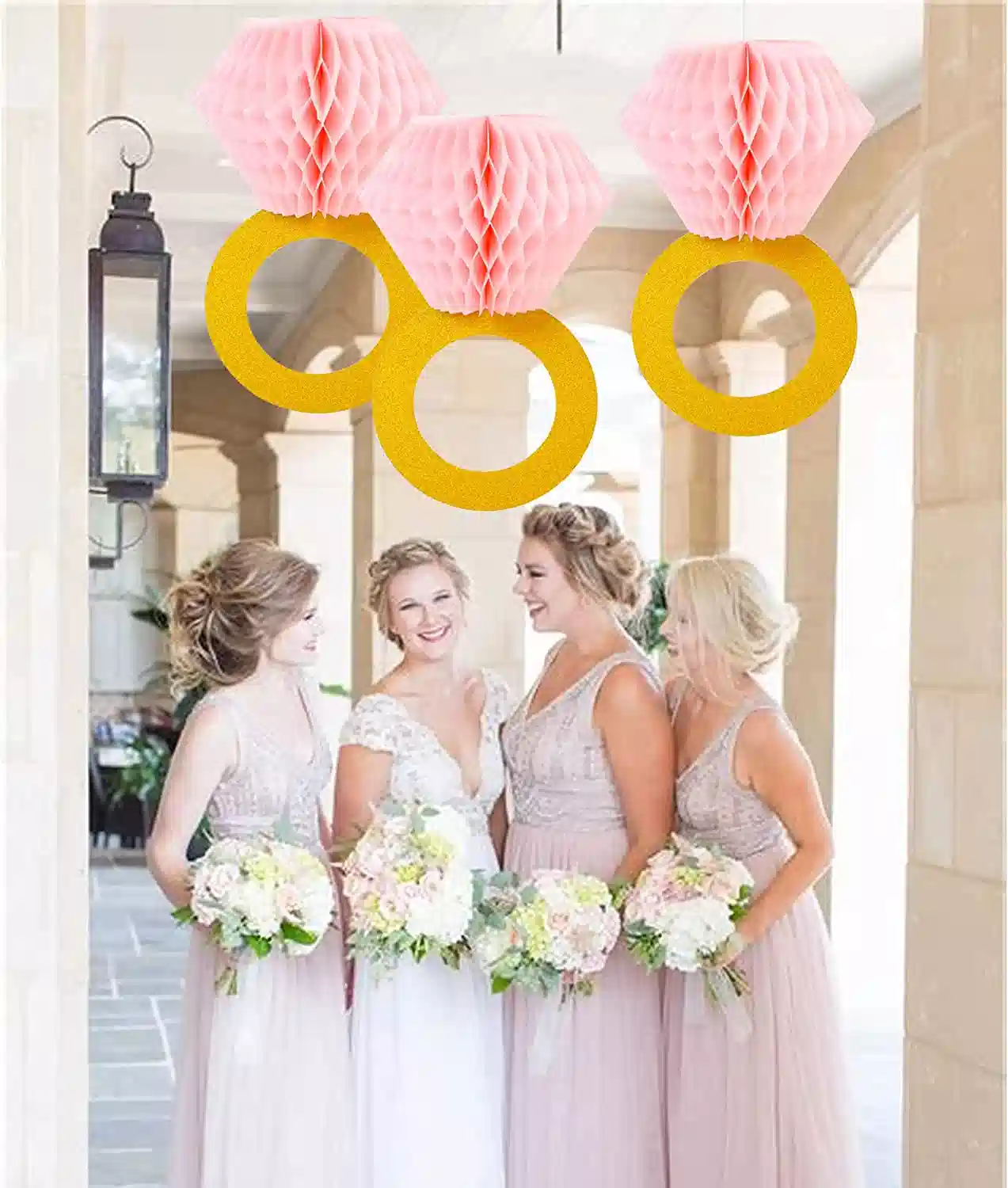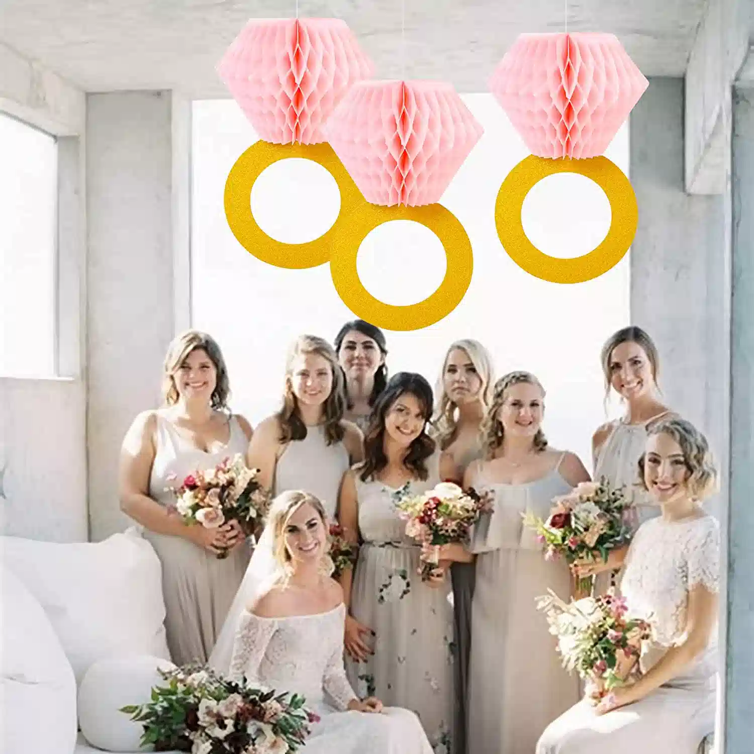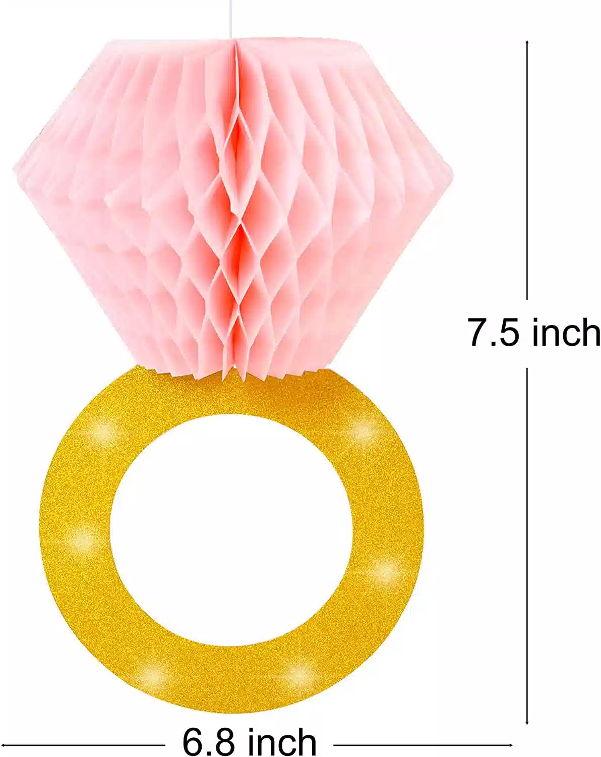 - 【Engagement or wedding party decorations】 You will get 3pcs gold glitter diamond rings with pink honeycomb, measuring 7.5″*6.8″ each. Give a huge surprise for your beloved girl.
