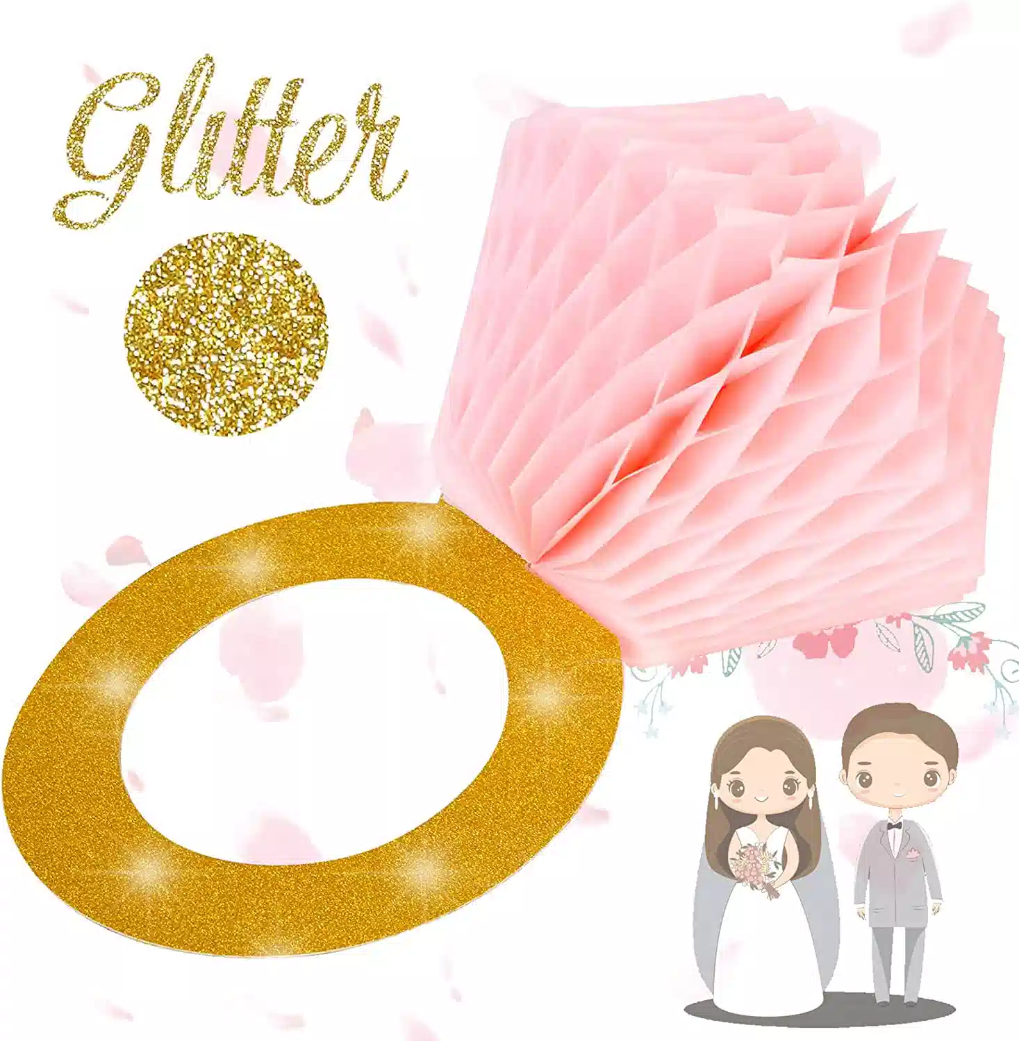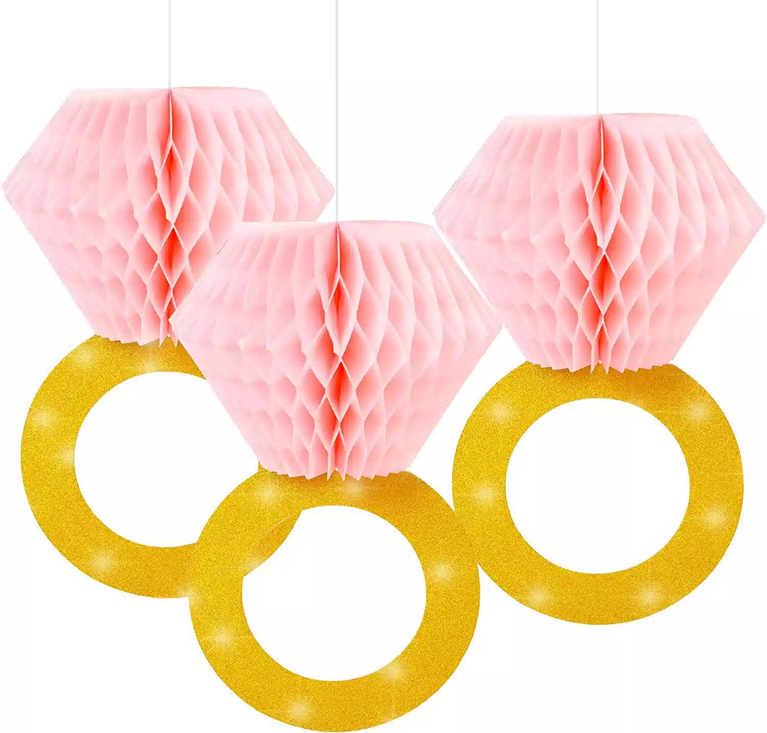 - 【Premium engagement favor honeycomb ring hanging】Glitter gold ring and pink honeycomb hanging decoration is made of premium cardboard with glitter powder. Add more fun to your party, cheer them up!