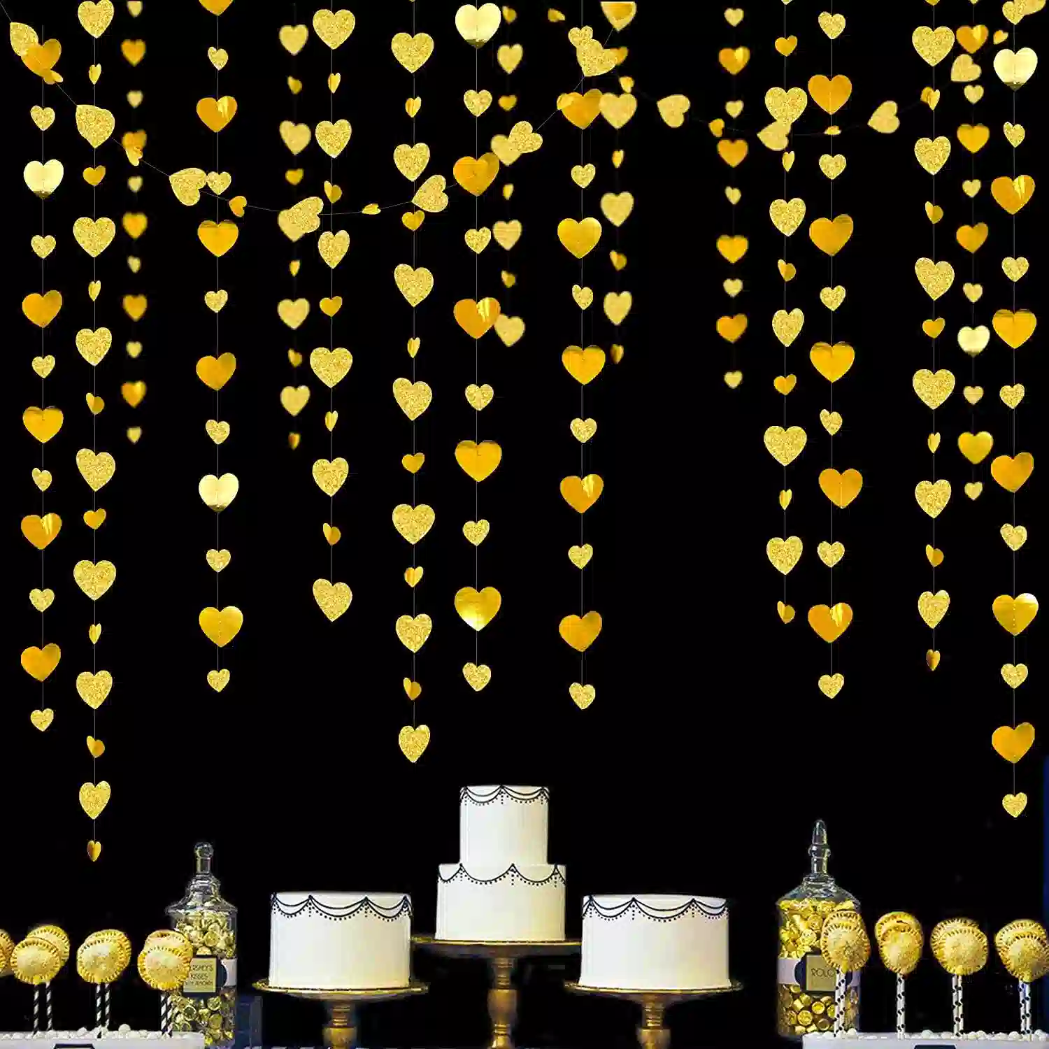 Crafted from double-sided high-quality metallic and glitter paper, each piece is carefully machine-sewn with thread for durability and reusability. Simply unroll carefully before hanging to prevent tangling. Perfect for Valentine’s Day, weddings, engagements, bridal showers, anniversaries, bachelorette parties, birthdays, and other romantic celebrations.