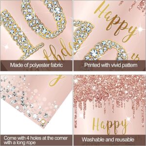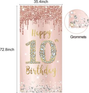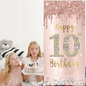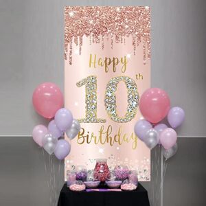 Happy 10th Birthday Door Banner Backdrop Decorations, Pink Rose Gold 10 Year Old Birthday Party Door Cover Sign Supplies, Large Ten Birthday Poster Background Photo Booth Props Décor