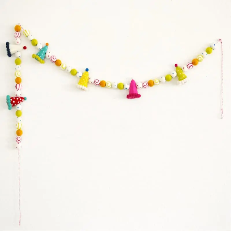 • Handmade felt ball garland for birthdays and parties