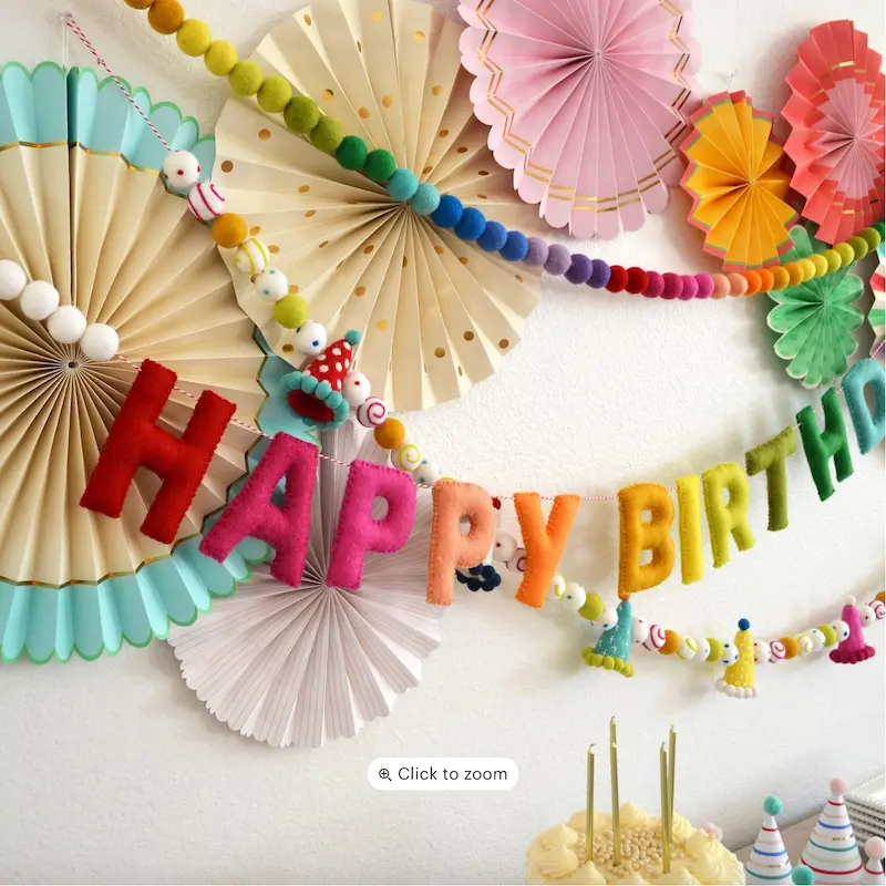 Make your party fun, colorful, and unforgettable with our Happy Birthday Felt Ball Garland!