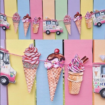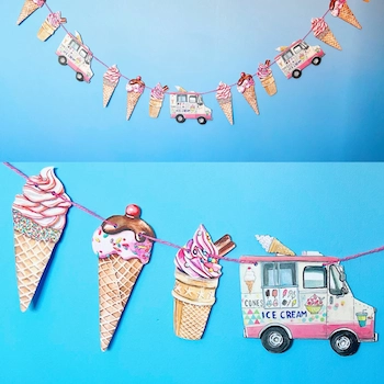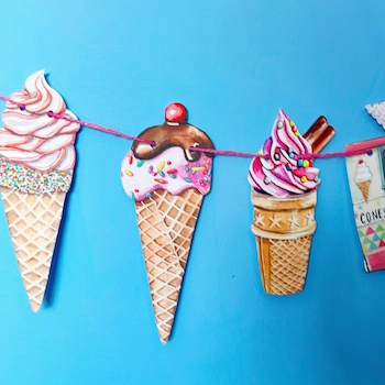 Add a scoop of sweetness to your celebration with our Ice Cream Garland. Designed with playful ice cream-shaped cards, this fun summer bunting brings color, joy, and a festive vibe to birthdays, holiday parties, and kids’ events.