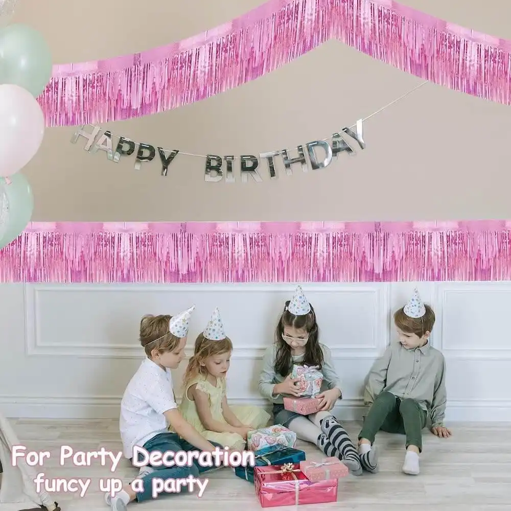 Turn any celebration into a sparkling spectacle with our Metallic Foil Fringe Garland. Designed for parade floats, graduation celebrations, weddings, birthdays, and themed parties, this iridescent fringe backdrop instantly creates a festive and eye-catching atmosphere.