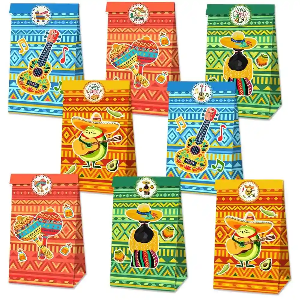 Ideal for Cinco De Mayo parties, Mexican-themed birthdays, taco bar decorations, festivals, and celebrations, these vibrant goodie bags make your event colorful, organized, and photo-ready.