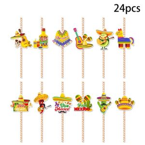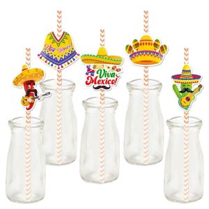 Cinco De Mayo Fiesta Paper Striped Straws Mexican Straws for Fun Fiesta Taco Party Supplies, Luau Event Photo Props, Mexican Theme Carnivals Festivals, Wedding, Birthdays Party Favors