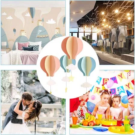 Each garland measures approximately 21 inches long, with hot air balloons 7.5 inches high, clouds 3 inches high, and stars 3.1 inches high. Made from high-quality, lightweight paper, these garlands are durable, reusable, and easy to hang, adding instant charm and elegance to any party setup.