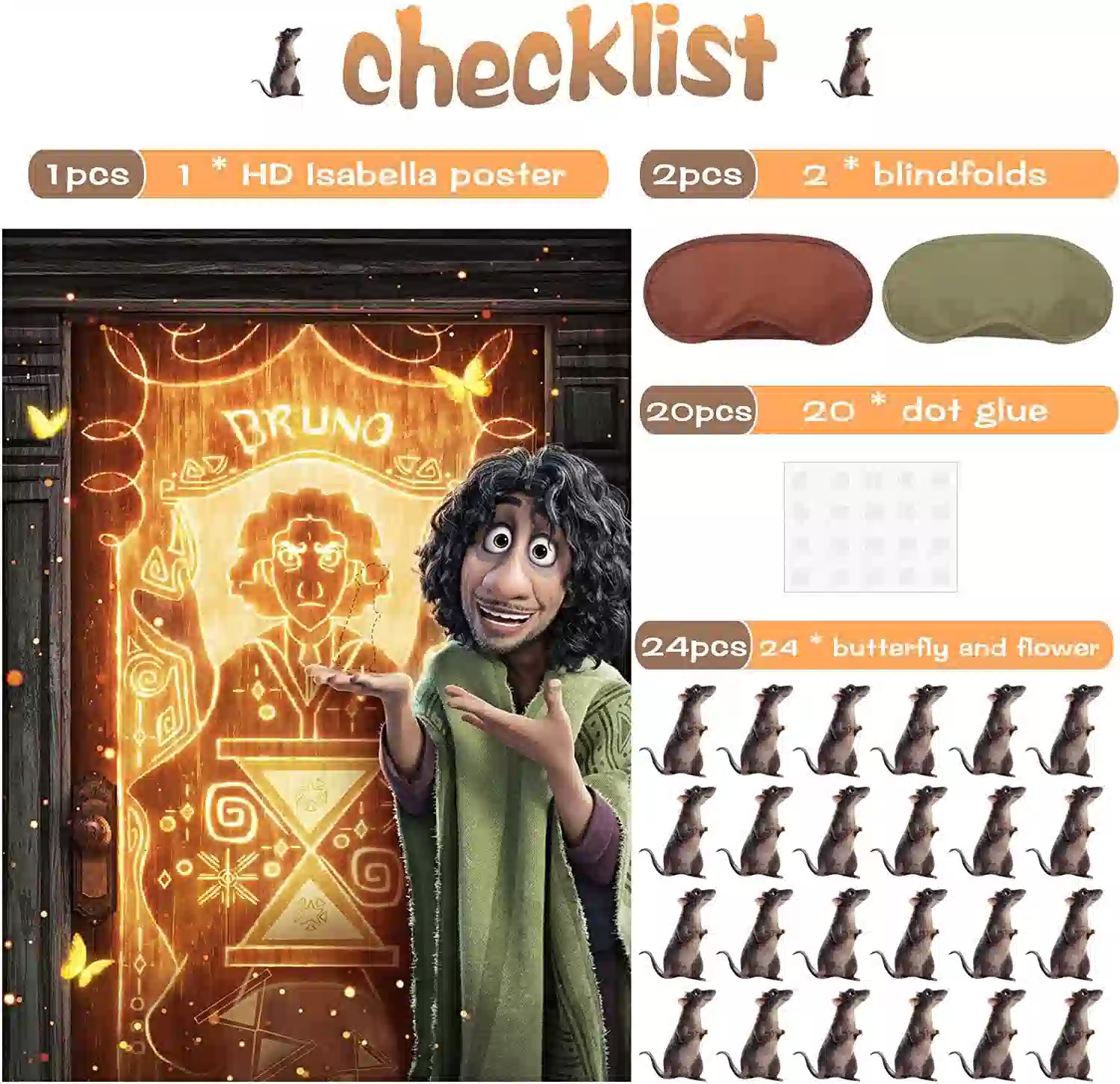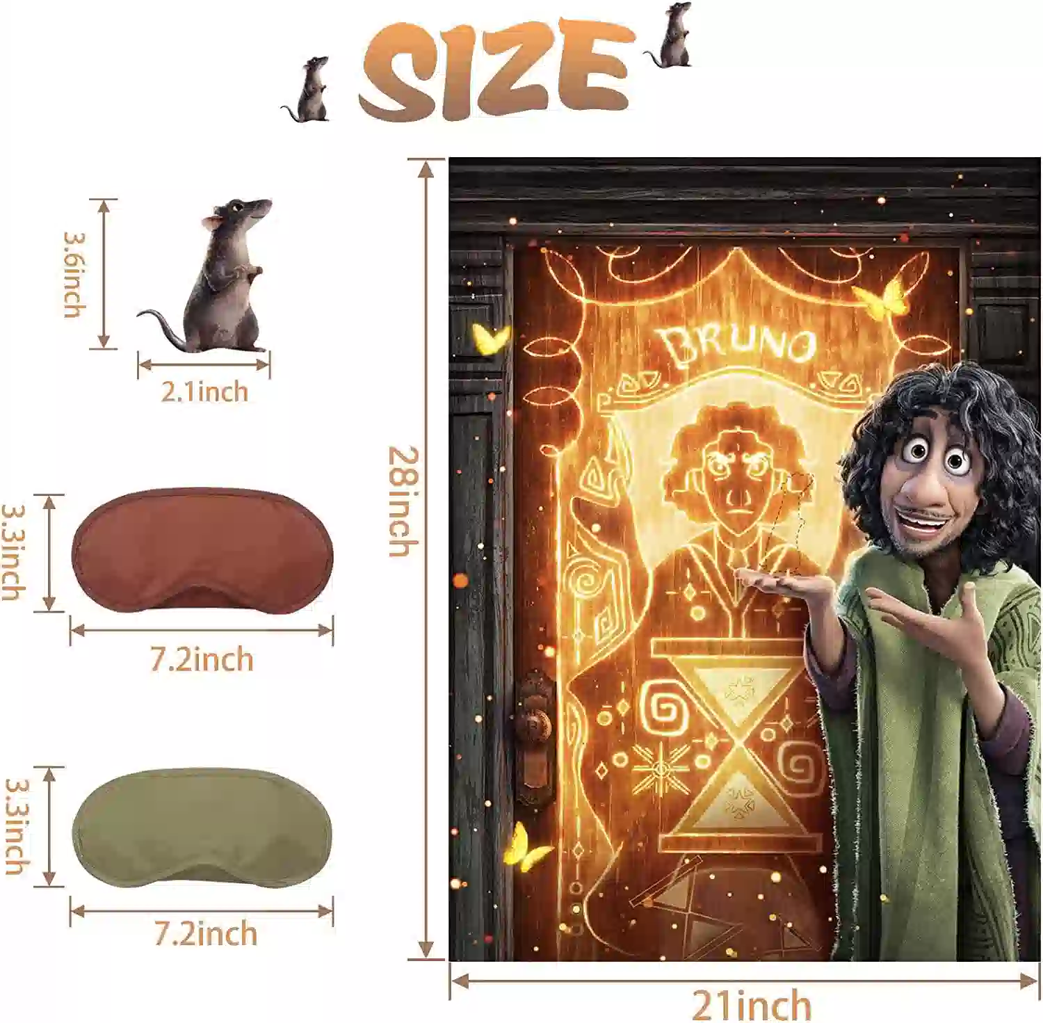 Add laughter and excitement to your Bruno-themed celebration with the “Pin the Rat on Bruno” Birthday Party Game! Inspired by fan-favorite characters, this interactive game includes a large HD Bruno poster, 24 reusable rat stickers, and blindfolds for classic party fun.