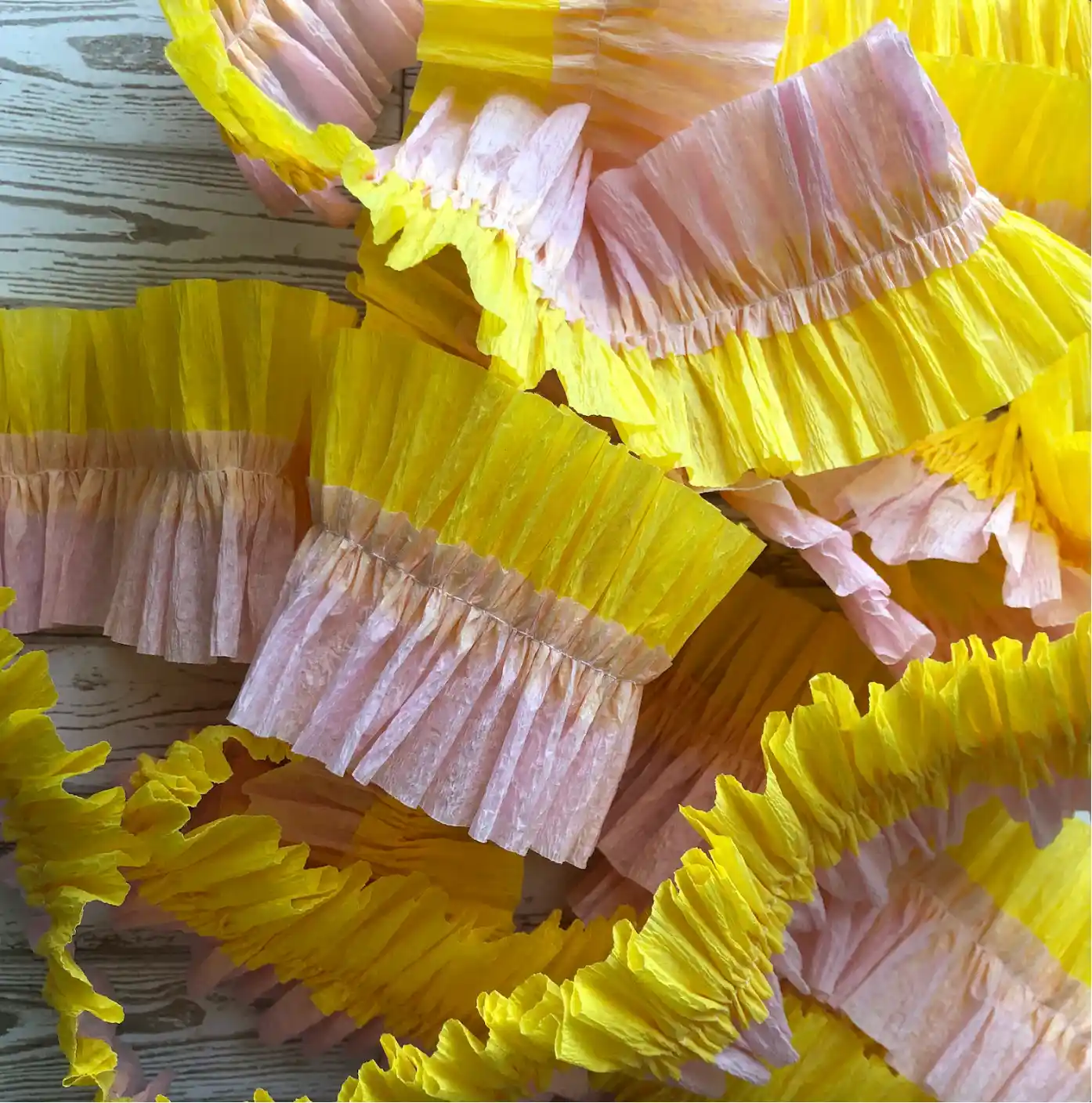 Bright and ruffled crepe paper streamers in Pink Lemonade, perfect for colorful birthday backdrops and rainbow party decorations.
