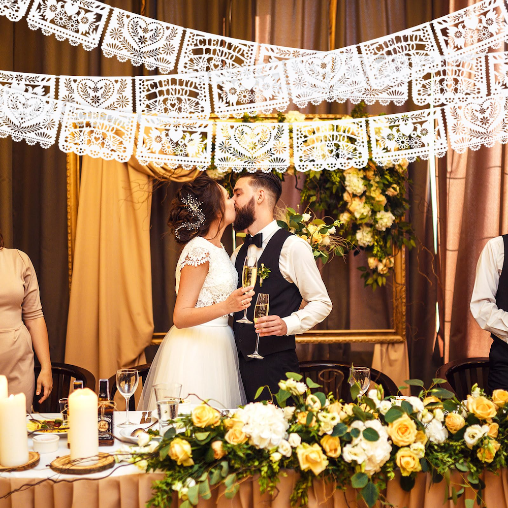 Add a festive and elegant touch to your celebrations with this White Papel Picado Banner.